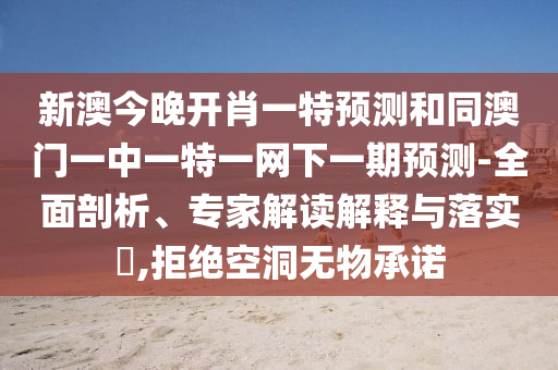 關于新澳今晚開肖一特預測和同澳門一中一特一網下一期預測的全面剖析、專家解讀解釋與落實,以及拒絕空洞無物承諾的深入探討