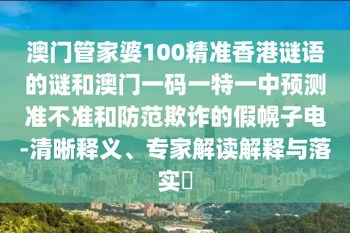 澳門管家婆100精準(zhǔn)香港謎語的謎和澳門一碼一特一中預(yù)測準(zhǔn)不準(zhǔn):清晰釋義、專家解讀解釋與落實?