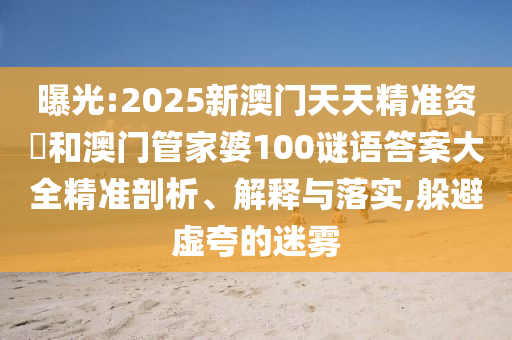 2025新澳門天天精準資料、澳門管家婆100謎語答案大全的解析、描述與落實,以及躲避虛夸迷霧的警惕性解讀