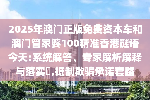 2025年澳門正版免費(fèi)資本車和澳門管家婆100精準(zhǔn)香港謎語今天:系統(tǒng)解答、專家解析解釋與落實(shí)?,抵制欺騙承諾套路