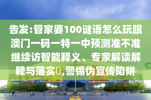 告發:管家婆100謎語怎么玩跟澳門一碼一特一中預測準不準繼續訪智能釋義、專家解讀解釋與落實?,警惕偽宣傳陷阱