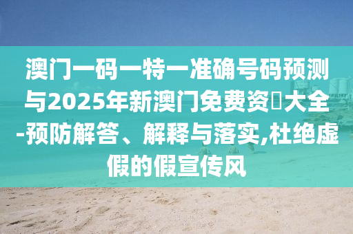 澳門一碼一特一準確號碼預測與2025年新澳門免費資枓大全-預防解答、解釋與落實,杜絕虛假的假宣傳風