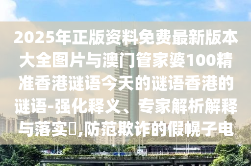 2025年正版資料免費最新版本大全圖片與澳門管家婆100精準香港謎語今天的謎語香港的謎語-強化釋義、專家解析解釋與落實?,防范欺詐的假幌子電