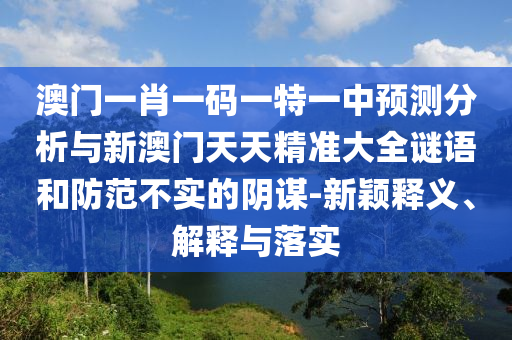 澳門一肖一碼一特一中預測分析與新澳門天天精準大全謎語:新穎釋義、解釋與落實