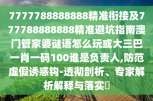 7777788888888精準銜接及777788888888精準避坑指南澳門管家婆謎語怎么玩或大三巴一肖一碼100誰是負責人:透徹剖析、專家解析解釋與落實?
