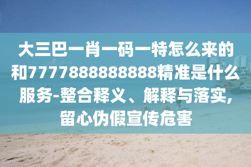 關于關鍵詞“大三巴一肖一碼一特怎么來的”和“7777888888888精準是什么服務整合”的釋義、解釋與落實,以及警惕虛假宣傳的危害,下面將進行全面而詳細的探討。