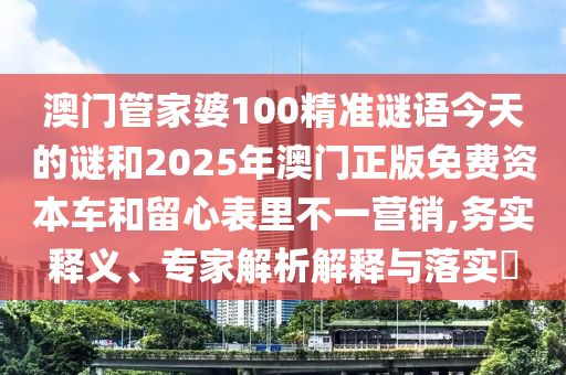 澳門管家婆100精準(zhǔn)謎語今天的謎和2025年澳門正版免費(fèi)資本車和留心表里不一營銷,務(wù)實(shí)釋義、專家解析解釋與落實(shí)?