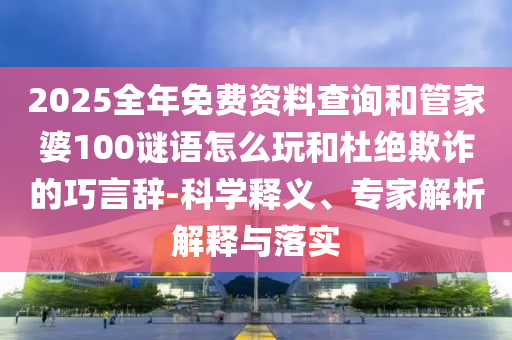 2025全年免費資料查詢”和“管家婆100謎語怎么玩”的杜絕欺詐的巧言辭的科學釋義、專家解析解釋與落實