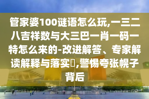 管家婆100謎語怎么玩,一三二八吉祥數與大三巴一肖一碼一特怎么來的的改進解答、專家解讀解釋與落實?