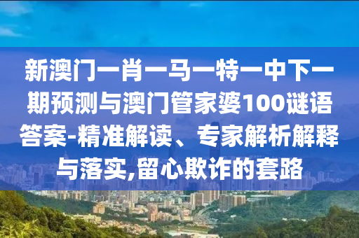 新澳門一肖一馬一特一中下一期預測與澳門管家婆100謎語答案-精準解讀、專家解析解釋與落實,留心欺詐的套路