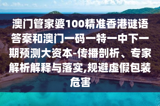 澳門管家婆100精準香港謎語答案和澳門一碼一特一中下一期預測大資本-傳播剖析、專家解析解釋與落實,規避虛假包裝危害