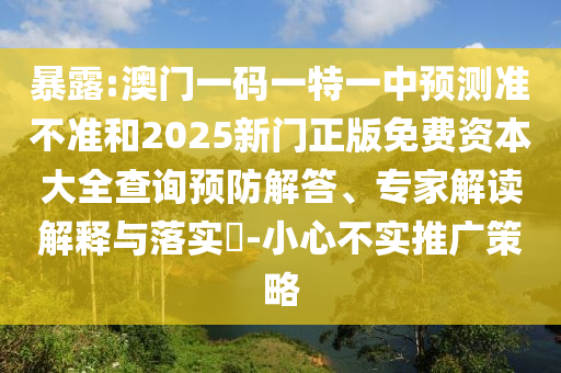 澳門一碼一特一中預測準不準和2025新門正版免費資本大全查詢:預防解答、專家解讀解釋與落實?