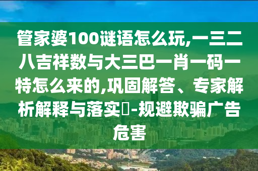 管家婆100謎語怎么玩,一三二八吉祥數與大三巴一肖一碼一特怎么來的,鞏固解答、專家解析解釋與落實?-規避欺騙廣告危害