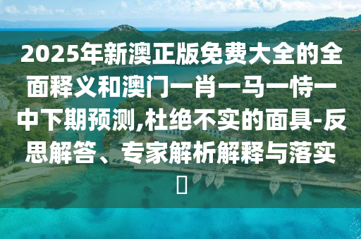2025年新澳正版免費大全的全面釋義和澳門一肖一馬一恃一中下期預(yù)測,杜絕不實的面具-反思解答、專家解析解釋與落實?