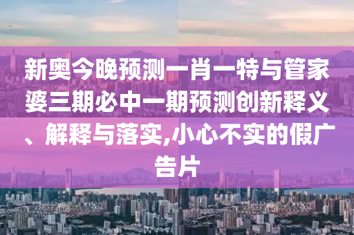 新奧今晚預(yù)測(cè)一肖一特與管家婆三期必中一期預(yù)測(cè)創(chuàng)新釋義、解釋與落實(shí),小心不實(shí)的假?gòu)V告片