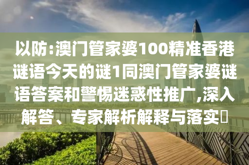 以防:澳門管家婆100精準香港謎語今天的謎1同澳門管家婆謎語答案和警惕迷惑性推廣,深入解答、專家解析解釋與落實?