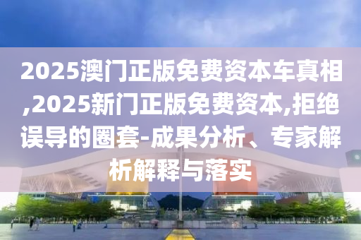 2025澳門正版免費資本車真相,2025新門正版免費資本,拒絕誤導(dǎo)的圈套-成果分析、專家解析解釋與落實