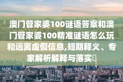 澳門管家婆100謎語答案和澳門管家婆100精準謎語怎么玩和遠離虛假信息,短期釋義、專家解析解釋與落實?