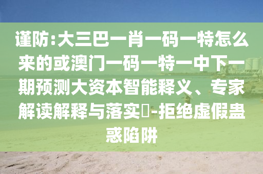 謹防:大三巴一肖一碼一特怎么來的或澳門一碼一特一中下一期預測大資本智能釋義、專家解讀解釋與落實?-拒絕虛假蠱惑陷阱