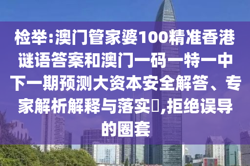 檢舉:澳門管家婆100精準香港謎語答案和澳門一碼一特一中下一期預測大資本安全解答、專家解析解釋與落實?,拒絕誤導的圈套