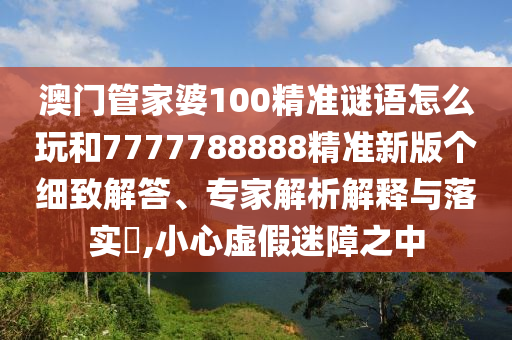 澳門管家婆100精準(zhǔn)謎語(yǔ)怎么玩和7777788888精準(zhǔn)新版?zhèn)€的細(xì)致解答、專家解析解釋與落實(shí)?