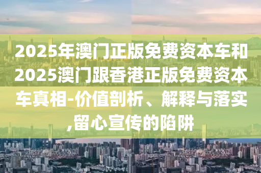 2025年澳門正版免費資本車”和“澳門與香港正版免費資本車真相”的價值剖析、解釋與落實,以及警惕宣傳陷阱的解析