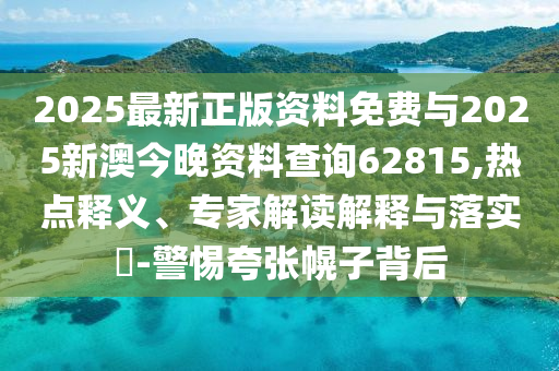 2025最新正版資料免費”與“2025新澳今晚資料查詢62815”的熱點釋義、專家解讀與落實,以及警惕虛假宣傳的重要性