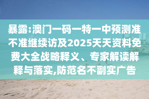 暴露:澳門一碼一特一中預測準不準繼續訪及2025天天資料免費大全戰略釋義、專家解讀解釋與落實,防范名不副實廣告