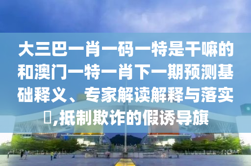 大三巴一肖一碼一特是干嘛的和澳門一特一肖下一期預測基礎釋義、專家解讀解釋與落實?,抵制欺詐的假誘導旗