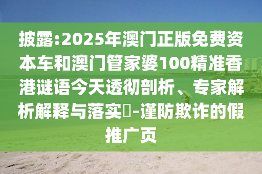 披露:2025年澳門正版免費資本車和澳門管家婆100精準香港謎語今天透徹剖析、專家解析解釋與落實?-謹防欺詐的假推廣頁
