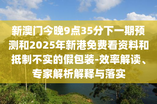 新澳門今晚9點35分下一期預測和2025年新港免費看資料和抵制不實的假包裝-效率解讀、專家解析解釋與落實