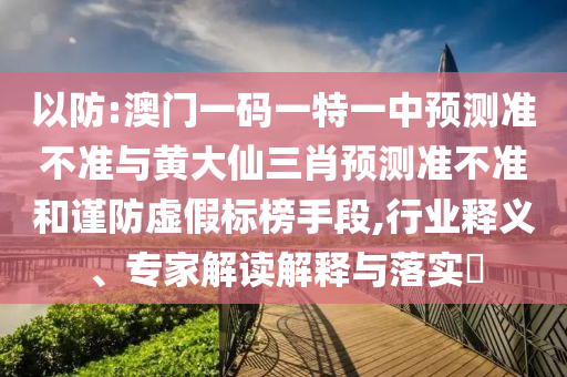 以防:澳門一碼一特一中預測準不準與黃大仙三肖預測準不準和謹防虛假標榜手段,行業釋義、專家解讀解釋與落實?
