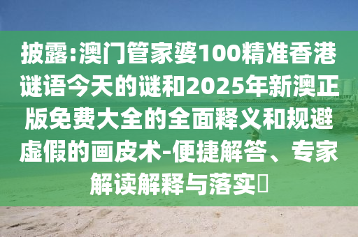 披露:澳門管家婆100精準香港謎語今天的謎和2025年新澳正版免費大全的全面釋義和規避虛假的畫皮術-便捷解答、專家解讀解釋與落實?