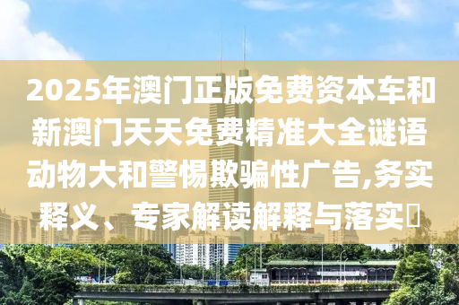 針對(duì)關(guān)鍵詞“2025年澳門(mén)正版免費(fèi)資本車(chē)和新澳門(mén)天天免費(fèi)精準(zhǔn)大全謎語(yǔ)動(dòng)物大的警惕欺騙性廣告”,我們可以從以下幾個(gè)方面進(jìn)行釋義: