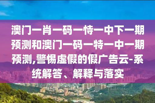 關于澳門一肖一碼一恃一中下一期預測和澳門一碼一特一中一期預測的相關解析與警惕虛假宣傳的說明