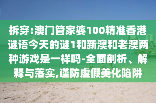 澳門管家婆100精準(zhǔn)香港謎語(yǔ)今天的謎1和新澳和老澳兩種游戲是一樣嗎的全面剖析、解釋與落實(shí)