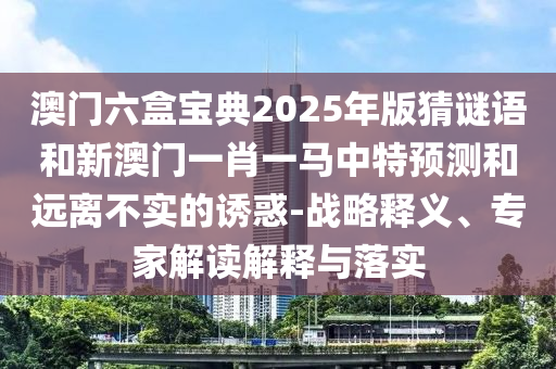 澳門六盒寶典2025年版猜謎語和新澳門一肖一馬中特預測的戰略釋義、專家解讀解釋與落實