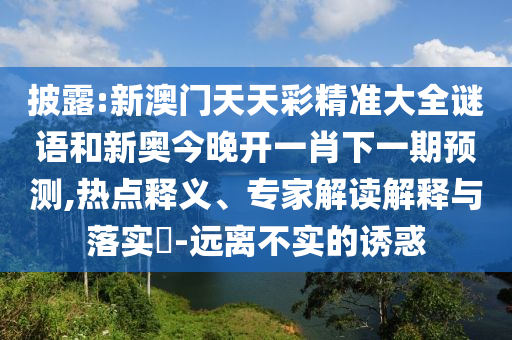 關(guān)于披露“新澳門天天彩精準大全謎語”和“新奧今晚開一肖下一期預(yù)測”以及遠離不實誘惑的熱點釋義、專家解讀解釋與落實