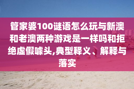 關于發掘“管家婆100謎語”的玩法與新澳和老澳兩種游戲是否一樣的全面釋義、專家解讀與落實,以及拒絕虛假宣傳的解析