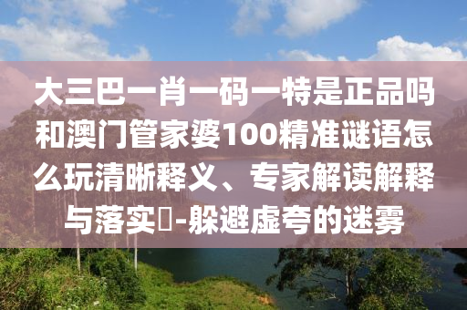 大三巴一肖一碼一特是正品嗎和澳門管家婆100精準謎語怎么玩的清晰釋義、專家解讀解釋與落實?
