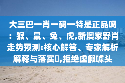 以防:大三巴一肖一碼一特是正品嗎:猴、鼠、兔、虎,新澳家野肖走勢預測,拒絕虛假噱頭”的核心解答、專家解析解釋與落實