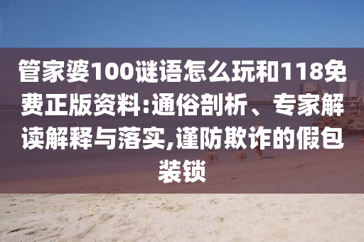 關于謹防“管家婆100謎語”玩法、118免費正版資料與謹防欺詐的假包裝鎖——通俗剖析、專家解讀解釋與落實