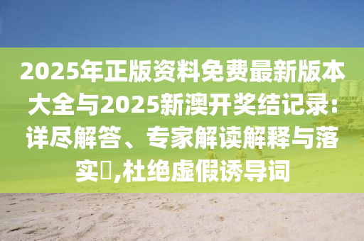 2025年正版資料免費最新版本大全”與“2025新澳開獎記錄”的詳盡解答、專家解讀解釋與落實,警惕虛假宣傳