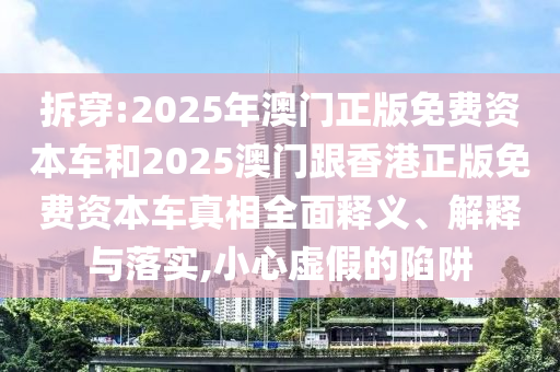 拆穿:2025年澳門正版免費資本車和2025澳門跟香港正版免費資本車真相全面釋義、解釋與落實,小心虛假的陷阱