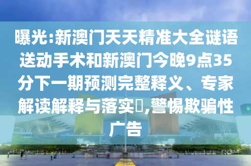 關(guān)于關(guān)鍵詞“曝光:新澳門(mén)天天精準(zhǔn)大全謎語(yǔ)送動(dòng)手術(shù)和新澳門(mén)今晚9點(diǎn)35分下一期預(yù)測(cè)——警惕欺騙性廣告”的完整釋義、專(zhuān)家解讀與落實(shí)