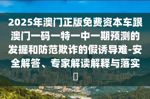 2025年澳門正版免費資本車跟澳門一碼一特一中一期預測的發掘的安全解答、專家解讀解釋與落實?