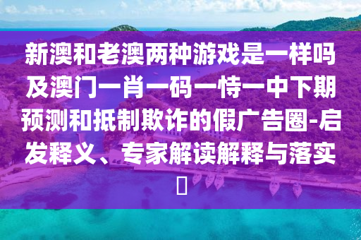 新澳和老澳兩種游戲是一樣嗎及澳門一肖一碼一恃一中下期預測和抵制欺詐的假廣告圈-啟發釋義、專家解讀解釋與落實?