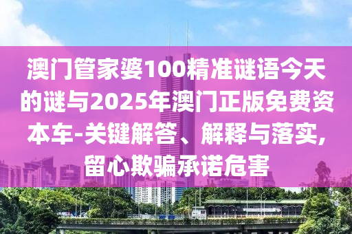 澳門管家婆100精準謎語今天的謎與2025年澳門正版免費資本車-關鍵解答、解釋與落實,留心欺騙承諾危害