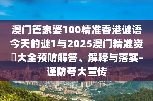 澳門管家婆100精準香港謎語今天的謎1與2025澳門精準資枓大全預防解答、解釋與落實-謹防夸大宣傳