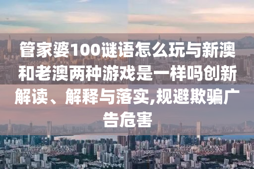 管家婆100謎語怎么玩”與新澳和老澳兩種游戲是否一樣的全面解讀、解釋與落實,以及如何規(guī)避虛假宣傳的危害